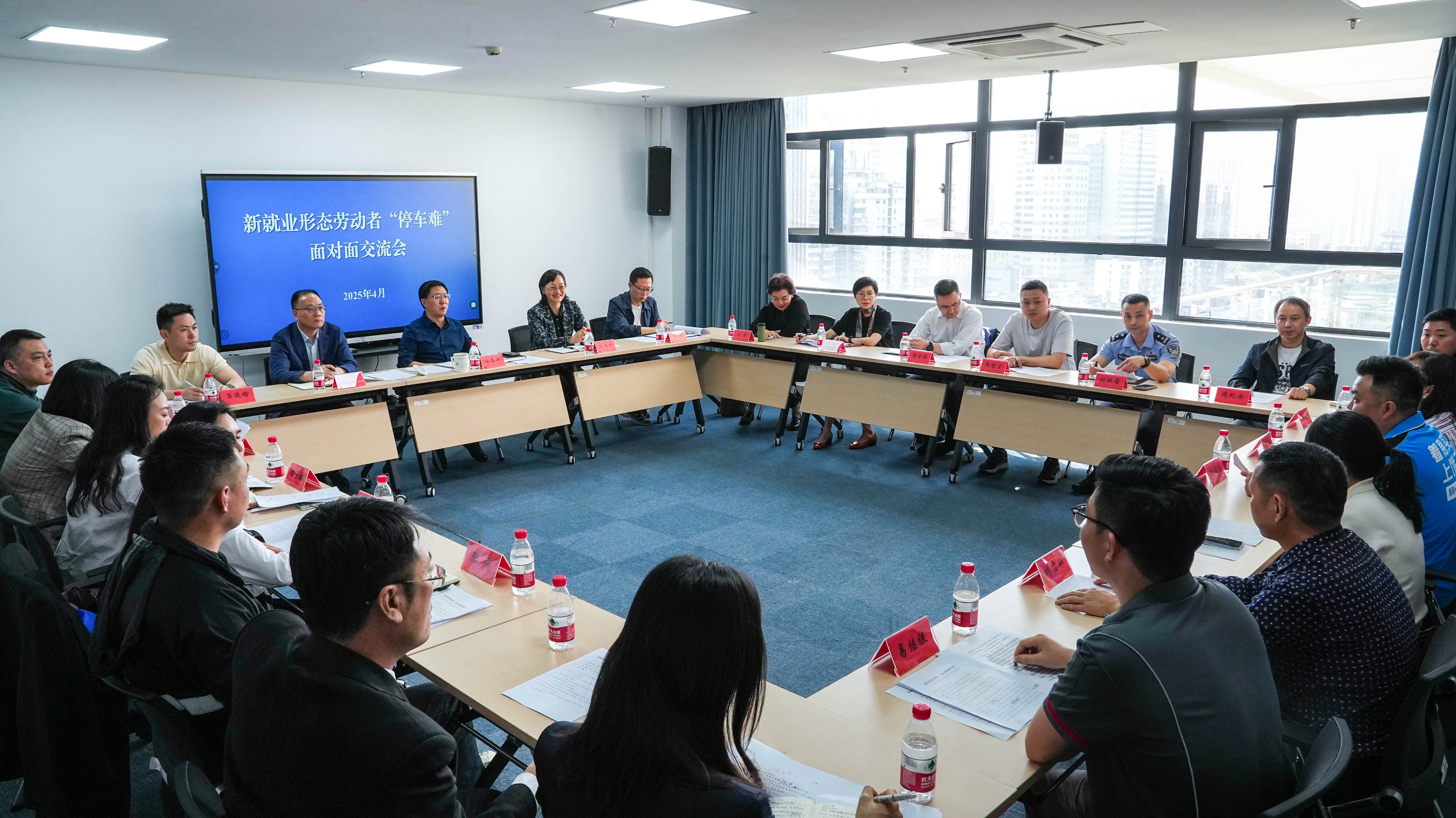 4月23日下午,重庆市总工会组织召开了新就业形态劳动者“停车难”面对面交流会,邀请“12351”委员工作室成员、渝中区政协工会界别委员,重庆市城市管理局、市公安局交巡警总队,渝中区城市管理局、区公安分局交巡警支队、街道(社区)等有关部门负责人,以及渝中区、江北区、沙坪坝区的新就业形态劳动者代表、区总工会相关负责人等参加。本次交流会旨在搭建沟通交流平台,汇聚各方力量,共同破解新就业形态劳动者面临的停车难题。