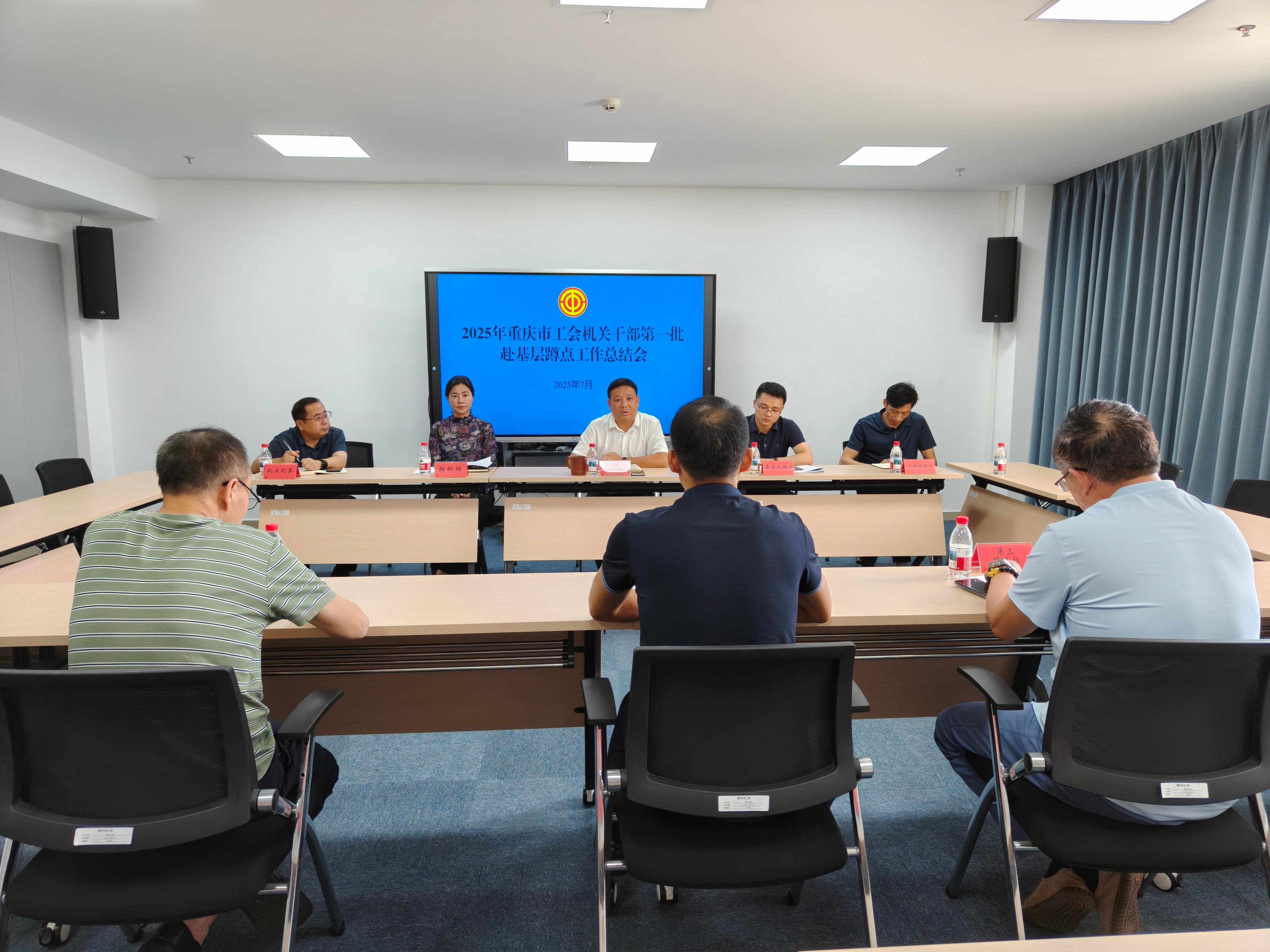 7月23日,2025年重庆市总工会机关干部第一批赴基层蹲点工作总结会召开。市总工会党组成员、副主席蒋扬福主持会议并讲话,市总工会有关部门负责同志,市总工会机关各蹲点组成员参加会议。
