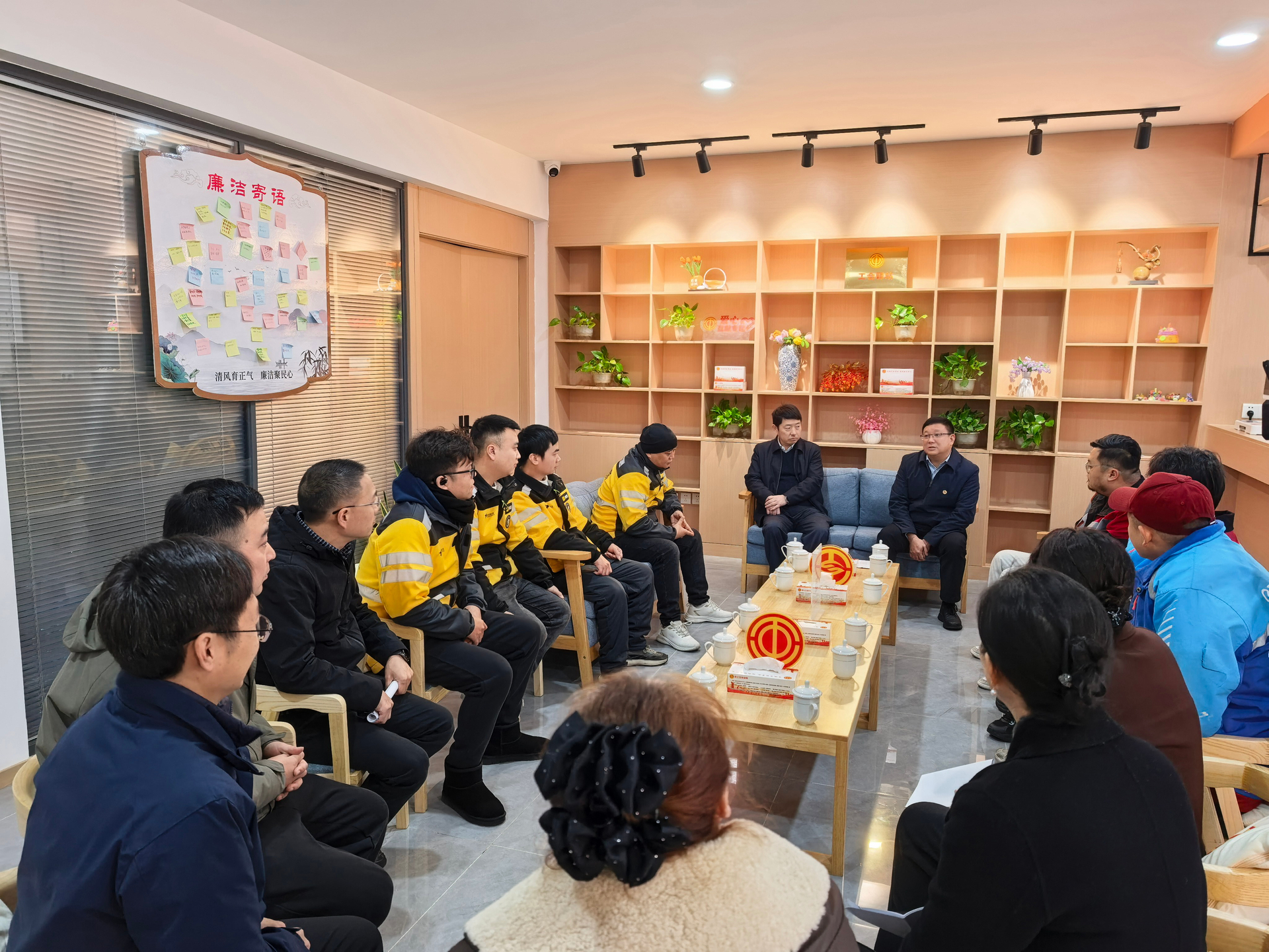 调研组前往万盛经开区东林街道观井湾工会驿站,与美团外卖、淘宝闪购、顺丰速递等平台企业的新就业形态劳动者代表、工会干部及企业负责人进行座谈交流。座谈期间,调研组详细询问劳动者的工作强度、生活保障等情况,认真倾听职工诉求,深入了解其实际困难与现实需求,并就与会人员提出的意见建议逐一记录并现场回应。