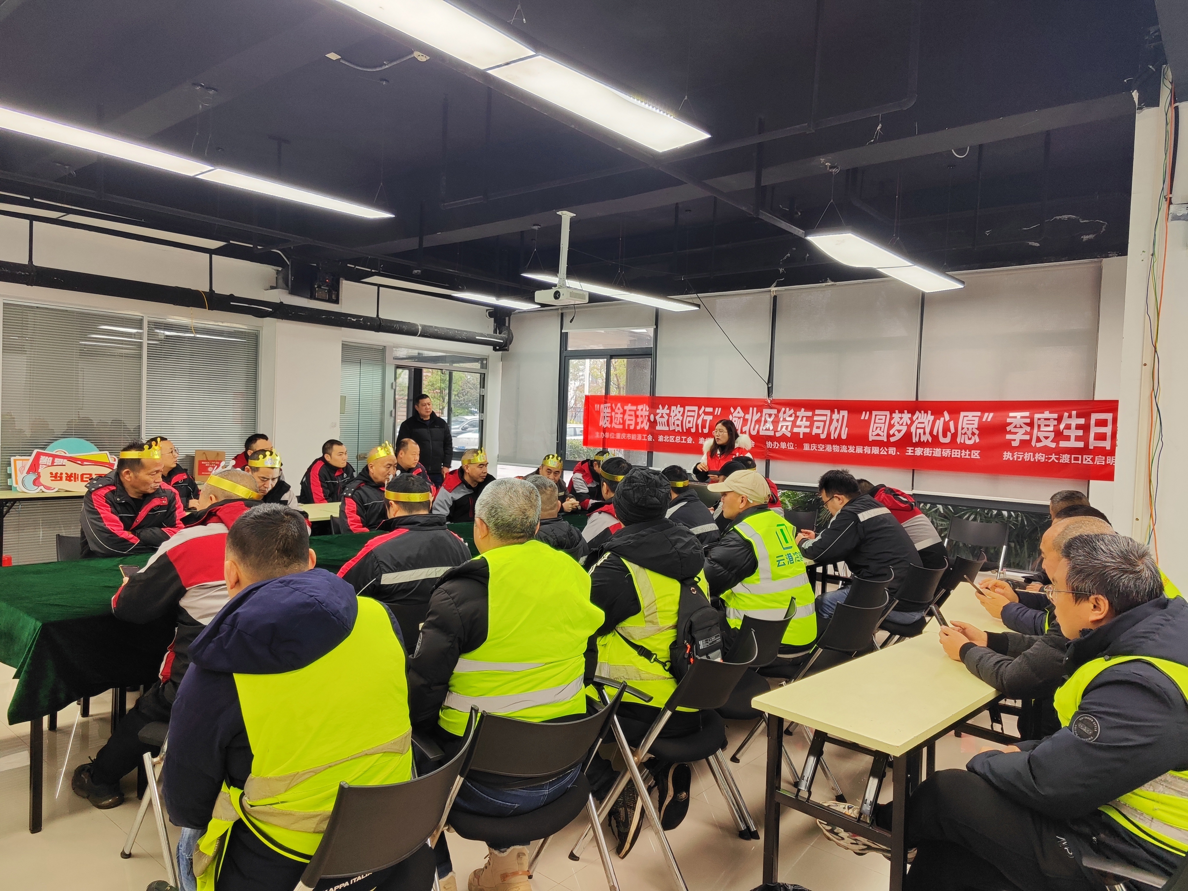 2月13日,为关心关爱新就业形态劳动者—货车司机,不断增强货车司机的获得感、幸福感、安全感,切实把党和工会组织的温暖送到新就业形态劳动者身边,进一步推进工会工作精准服务,营造全社会关爱货车司机劳动者的良好氛围。渝北区总工会、渝北职工帮扶基金会、大渡口区启明社会工作服务中心、渝北空港物流与硚田社区联合开展季度驾驶员“圆梦微心愿”集体生日会,帮助50余名货车司机达成心愿。