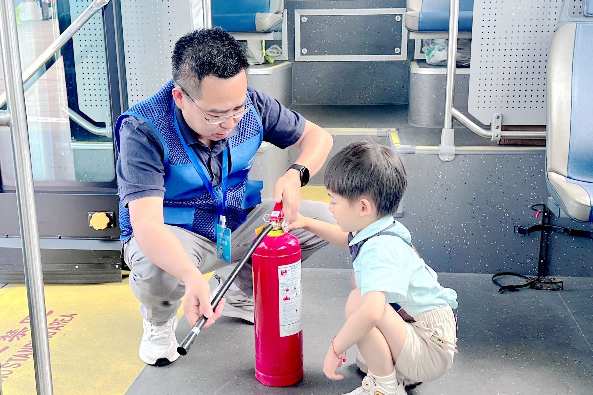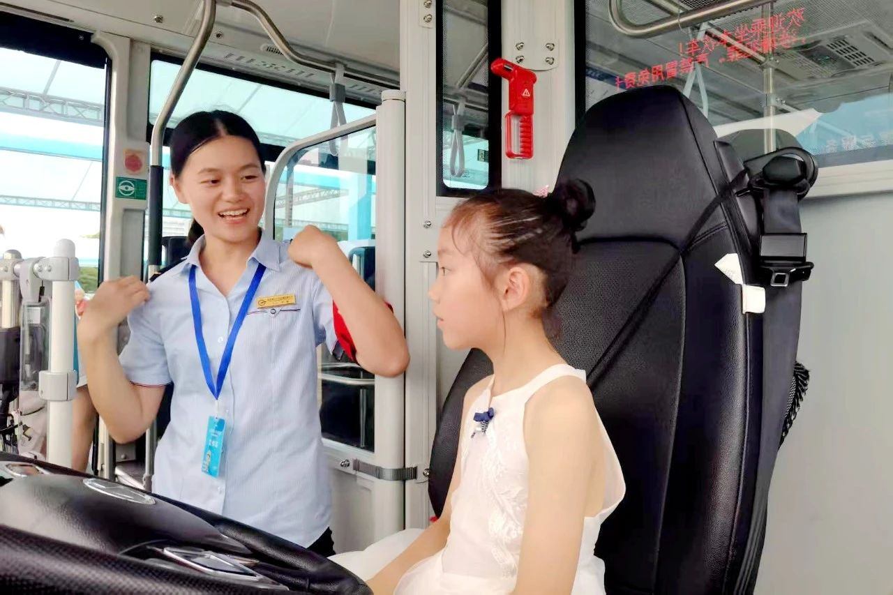 渝北区青年岗位能手李黎带领小朋友走进公交驾驶位,引导“沉浸式”直观判断公交驾驶视野盲区,普及车内应急设施设备运用方法,进一步帮助大家提升交通安全意识和应急避险能力。