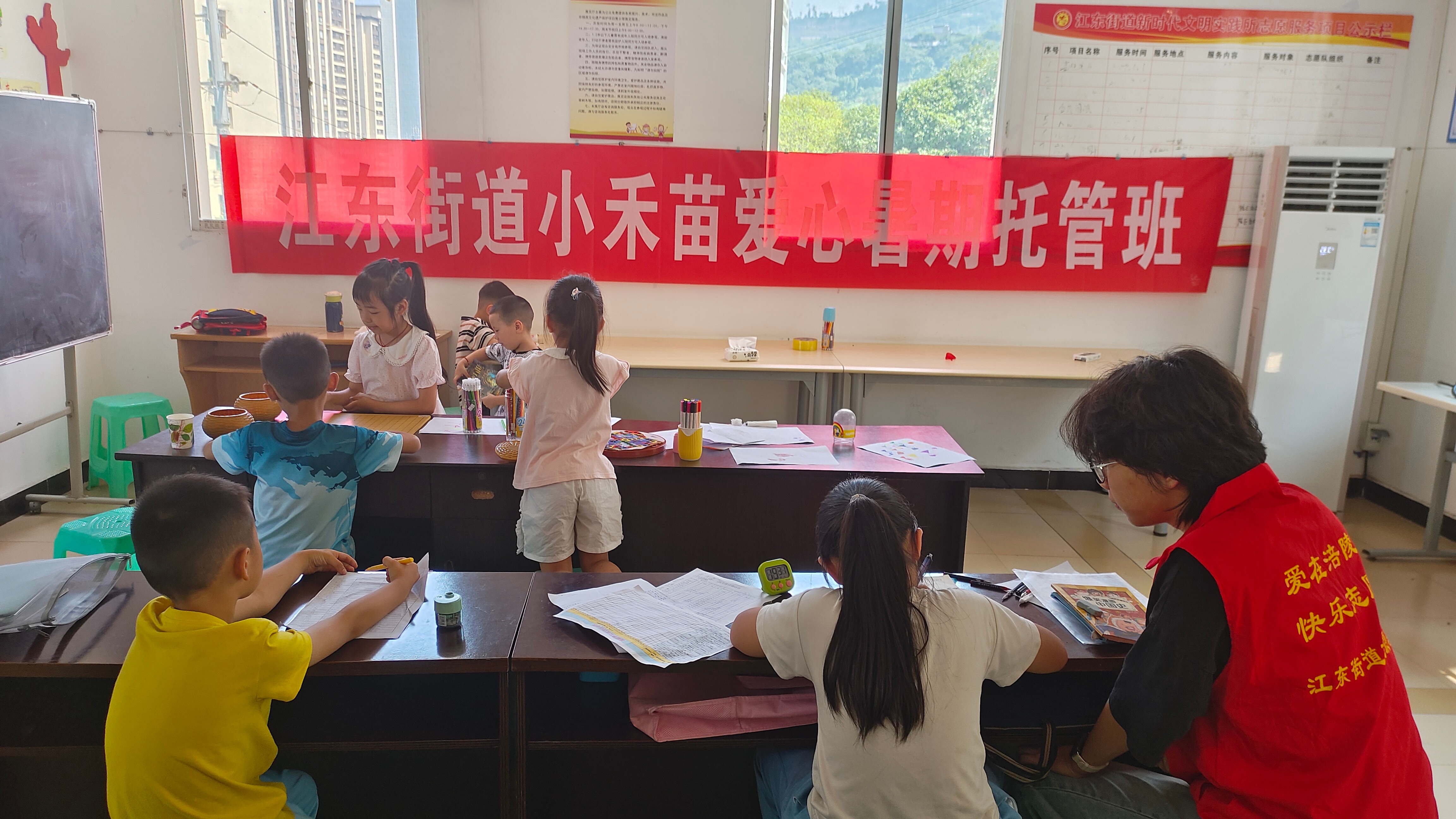 为缓解辖区在职职工、农民工及新业态劳动者家庭的暑期子女“看护难”问题,丰富少年儿童假期生活,江东街道精心筹备的“小禾苗”暑期公益托管班近日在群沱子社区正式开班。