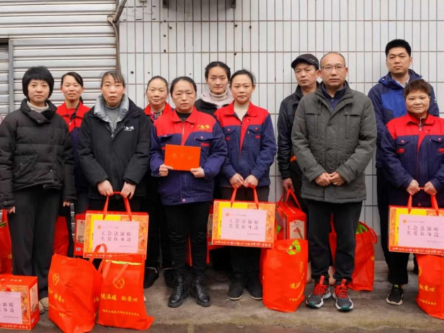 1月14日上午,区总工会慰问组一行到施家梁镇慰问重庆八斗味食品有限公司生产车间一线职工,向他们致以节日的祝福,并为他们送上慰问品和慰问金。