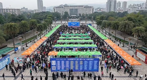 2月5日,由永川区总工会、区人力社保局等承办的2025春暖农民工暨“春风行动”大型招聘活动在永川人民广场举办,招聘会以“引老乡、回家乡、建家乡”为主题,吸引川渝452家企业到场纳贤,发布岗位信息1.26万余个。