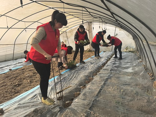 活动中,志愿者们走进新建村西瓜基地的西瓜大棚,帮助瓜农搬运瓜苗、栽种定植、盖土掩埋,与瓜农一起劳作,虽然大家的衣服粘上了泥土,但他们毫不在意,只为将自己手中的瓜苗安稳地栽进土壤里,生怕耽误瓜农的收成。大家在干中学、学中干,现场一片热火朝天的景象。