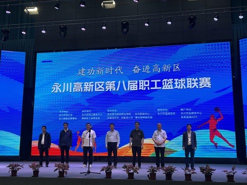 5月10日下午,永川高新技术产业开发区工会在永川职教中心体育馆举行高新区第八届职工篮球联赛开幕式。