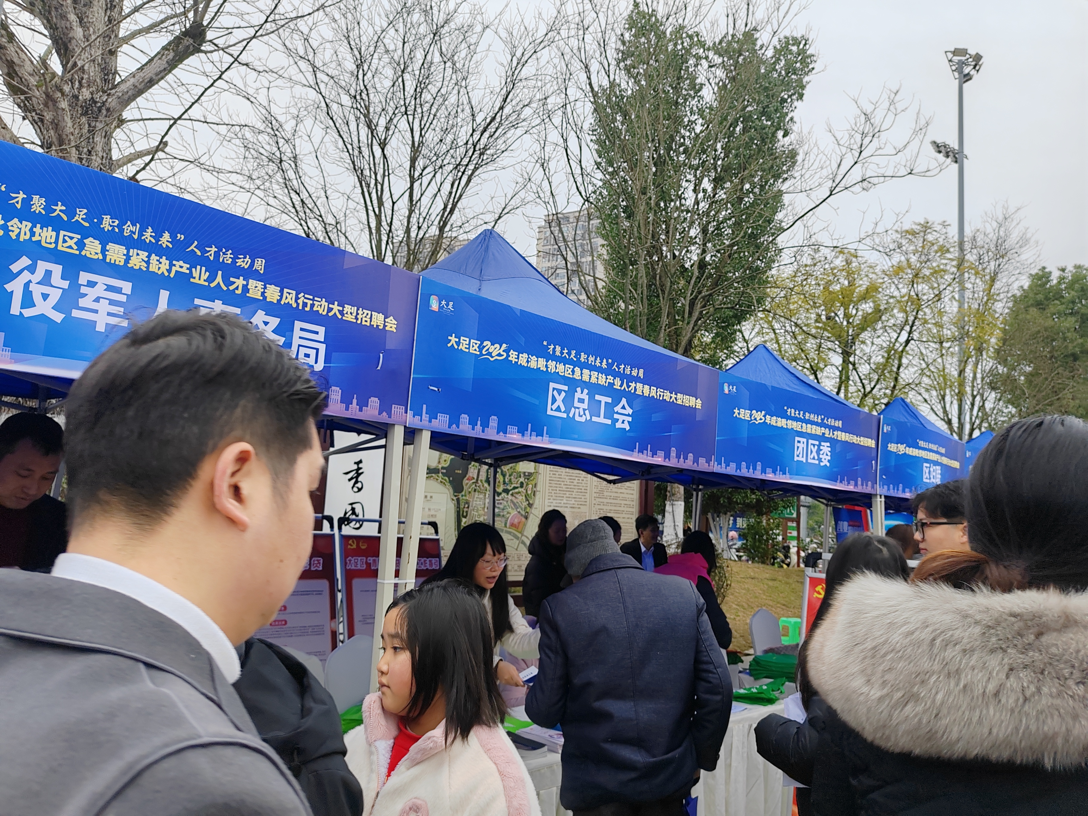 为积极响应国家稳就业决策部署,深入贯彻党的二十大和二十届三中全会精神,做好节后劳动者换岗流动和企业复工复产就业服务工作,2025年2月8日,由区委组织部和区人力社保局主办,区总工会、区退役军人事务局、区妇联、团区委、区残联协办的大足区2025年成渝毗邻地区急需紧缺产业人才暨春风行动大型招聘会在大足区香国公园正式启动。