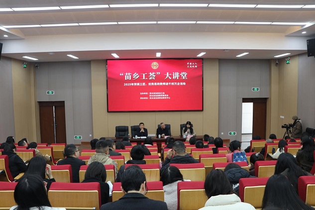 为深入实施职工群众思想政治引领建设工程,创新打造“重庆工人红岩大思政体系”,彭水自治县总工会于3月19日在县职教中心开展“苗乡工荟”大讲堂暨2025年劳模工匠、优秀思政教师进千校万企活动,大力弘扬劳模精神、劳动精神、工匠精神,充分发挥劳动模范的示范引领作用,激励广大职工立足岗位、创先争优。