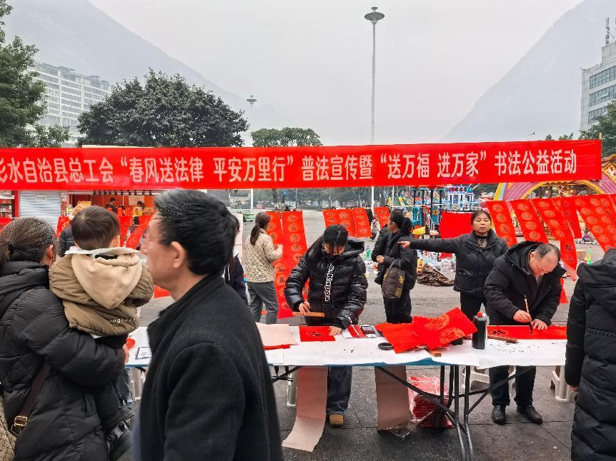 1月22日至23日,彭水自治县总工会在商贸园广场、两江广场举办2025年“春风送法律·平安万里行”普法宣传暨“送万福·进万家”公益活动,为广大职工群众送上“法治”贺礼和新春祝福,把工会组织的温暖送到广大职工的心间。