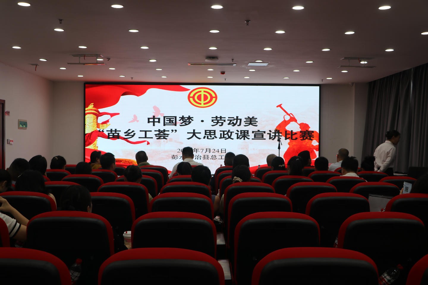 7月24日,由彭水自治县总工会主办的“中国梦 劳动美”“苗乡工荟”大思政课宣讲比赛在县融媒体中心成功举行。本次比赛旨在深入学习贯彻习近平新时代中国特色社会主义思想和党的二十大精神,弘扬劳动精神、劳模精神和工匠精神,激励广大职工立足岗位建功新时代。来自全县各行业、各单位的优秀职工代表齐聚一堂,用生动的语言和感人的故事展现了新时代劳动者的风采。