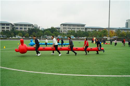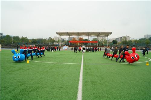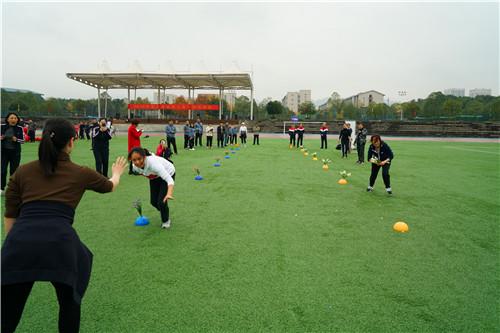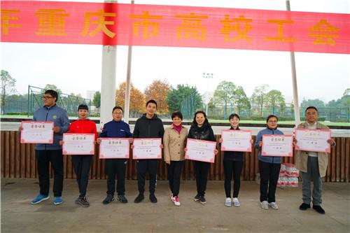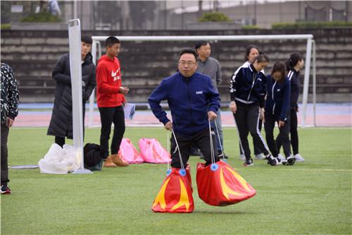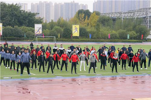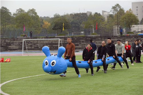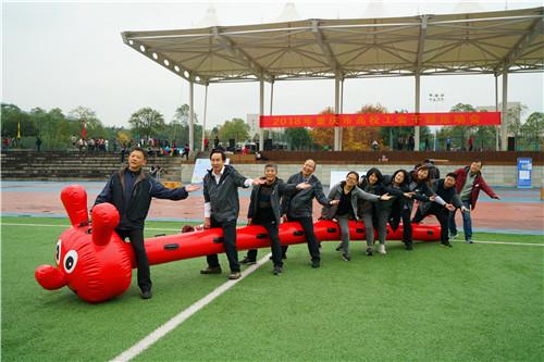 美丽的虎溪河畔,色彩缤纷,活动当天已是初冬,金灿灿的银杏、梧桐树叶在枝头舞动,11月16日上午,在重庆大学虎溪校区田径场上,举行了由市教科文卫体工会主办,重庆大学、西南大学承办的2018年重庆市高校工会干部运动会。来自全市31所高校的160余名工会干部参加了本次活动,比赛以团体组队方式进行,共分为16个队。微寒的天气、绵绵的细雨丝毫没有影响大家的热情。通过第九套广播体操展示以及欢乐龙舟、快乐大脚、抢收抢种、定点投蓝4个项目的比赛,最终在各项目评选出一等奖2个队,二等奖3个队,三等奖5个队。