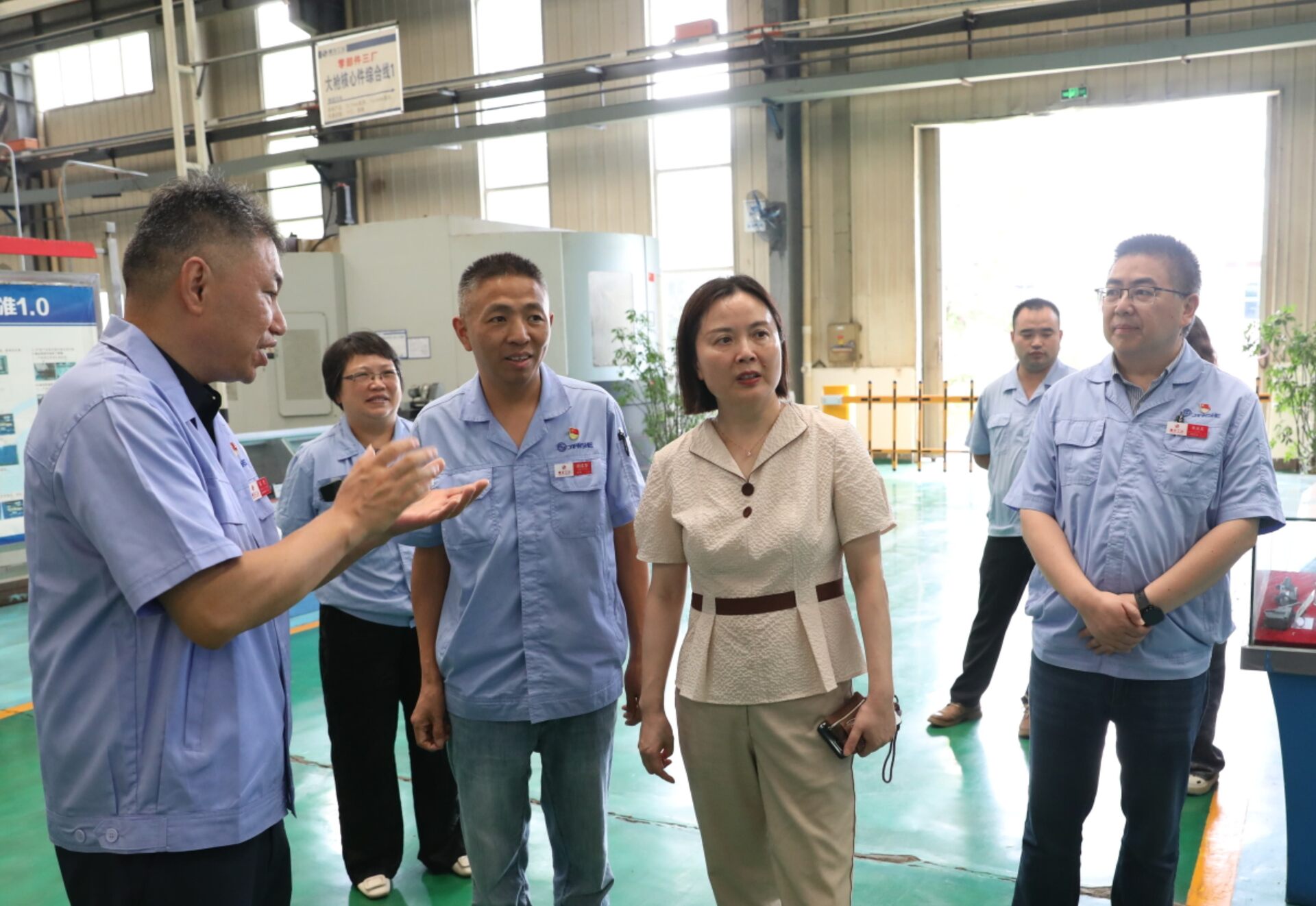 在向东技能大师工作室,胡春晓与工匠代表们进行了深入交流。她对基地产业工人队伍改革工作的实践成效给予充分肯定,希望基地紧密围绕生产经营实际和技术发展趋势,着力提升产业工人技能素质和创新能力,大力培养实用型、技能型、创新型人才。